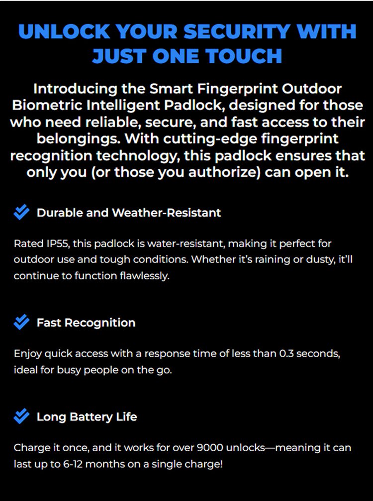 Outdoor waterproof smart fingerprint padlock
